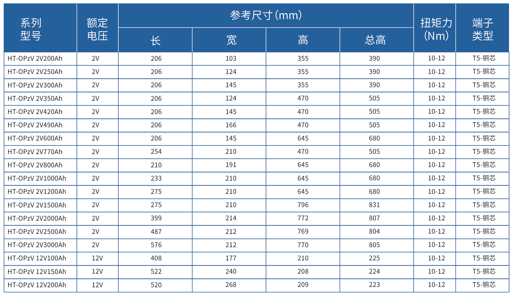HT-OPzV管式膠體蓄電池設計壽命2V20年、12V15年(25℃)正極壓鑄板柵,鉛鈣高錫正極板, 晶粒細小致密,耐腐蝕性好。正極板厚度設計≥8.5MM,管式正極板,活性物質藏于微孔滌綸套管 內,保證活性物質不會脫落。進口高品質氣相二氧化硅,呈凝膠狀態、不流動,無分層,電池循環性 能好。高性能專用微孔PE隔板,孔率大、電阻低及同時有效避免了短路現象的發生。新型防火阻燃 高敏低壓膠帽+防爆氣墊,排氣壓力精度高、耐酸防火抗老化,內嵌銅芯鉛基極柱具有更大的電流 承載能力與耐蝕性。采用特有密封技術,能夠避免電池漏液。